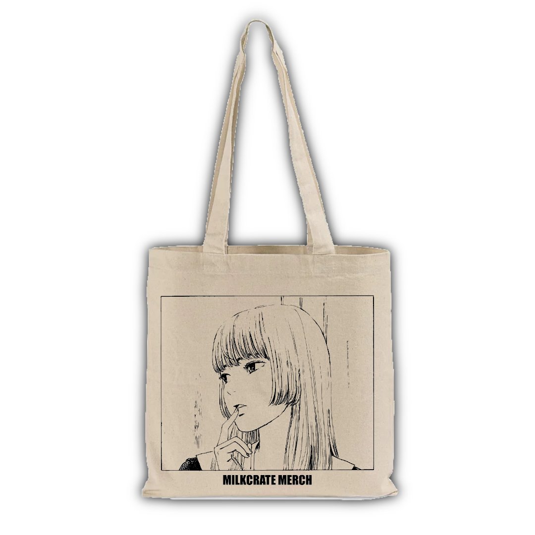 13.75"W x 13.75"H Canvas Tote Bag with a manga print.